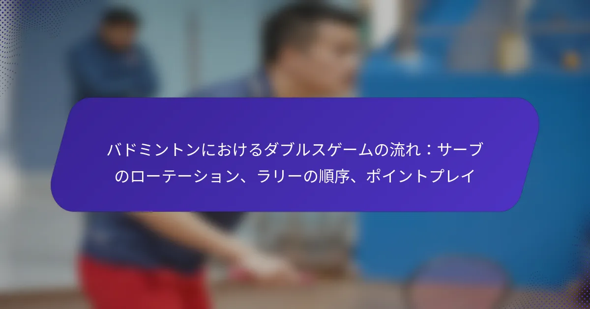 ダブルスバドミントンは、サービスのローテーション、ラリーのシーケンス、ポイントプレイを含む構造化されたプレイの流れを持っています。サービスのローテーションは、選手が交互にサーブすることを可能にし、公平性を確保します。一方、ラリーのシーケンスは、試合中にチームがどのように相互作用するかを決定します。これらの要素をマスターし、効果的なコミュニケーションと戦略を駆使することは、得点機会を最大化し、コートでの成功を収めるために不可欠です。