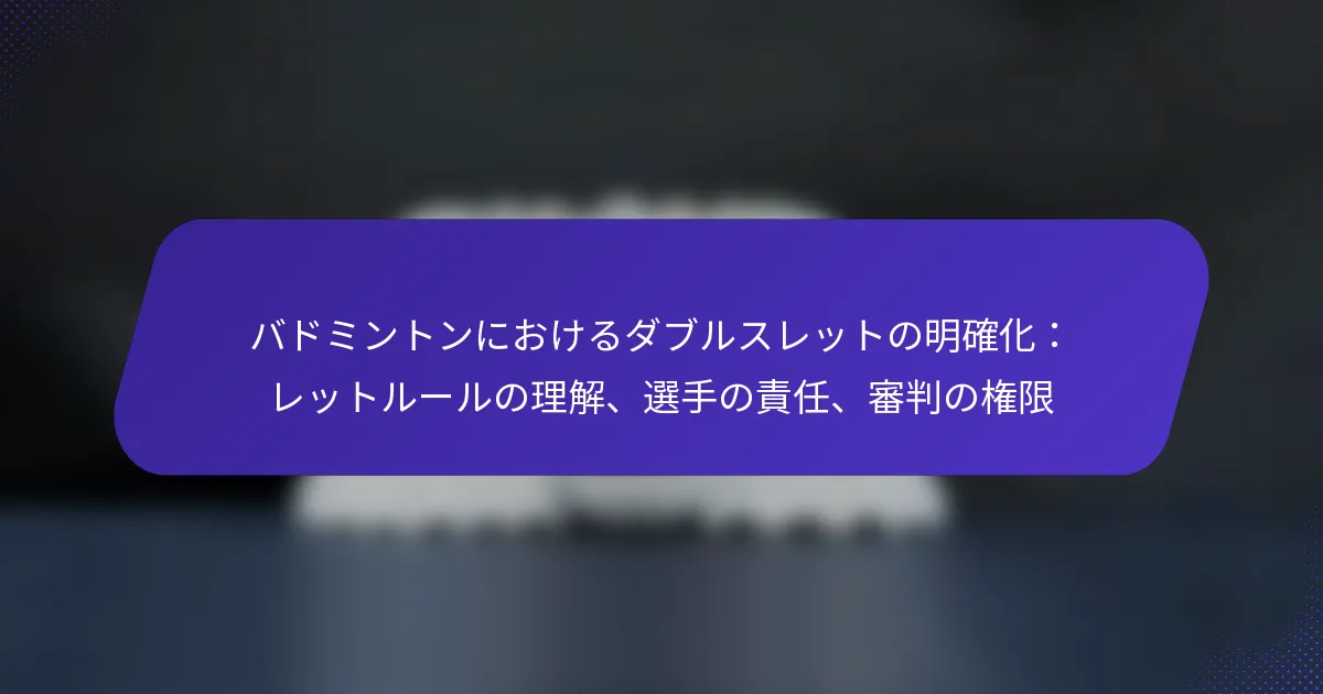バドミントンにおけるレットコールは試合の流れに大きな影響を与え、選手の焦点を移し、戦略を変更させる可能性があります。これらの影響を理解することは、選手や審判にとって重要であり、競技プレイの複雑さをナビゲートする際に役立ちます。