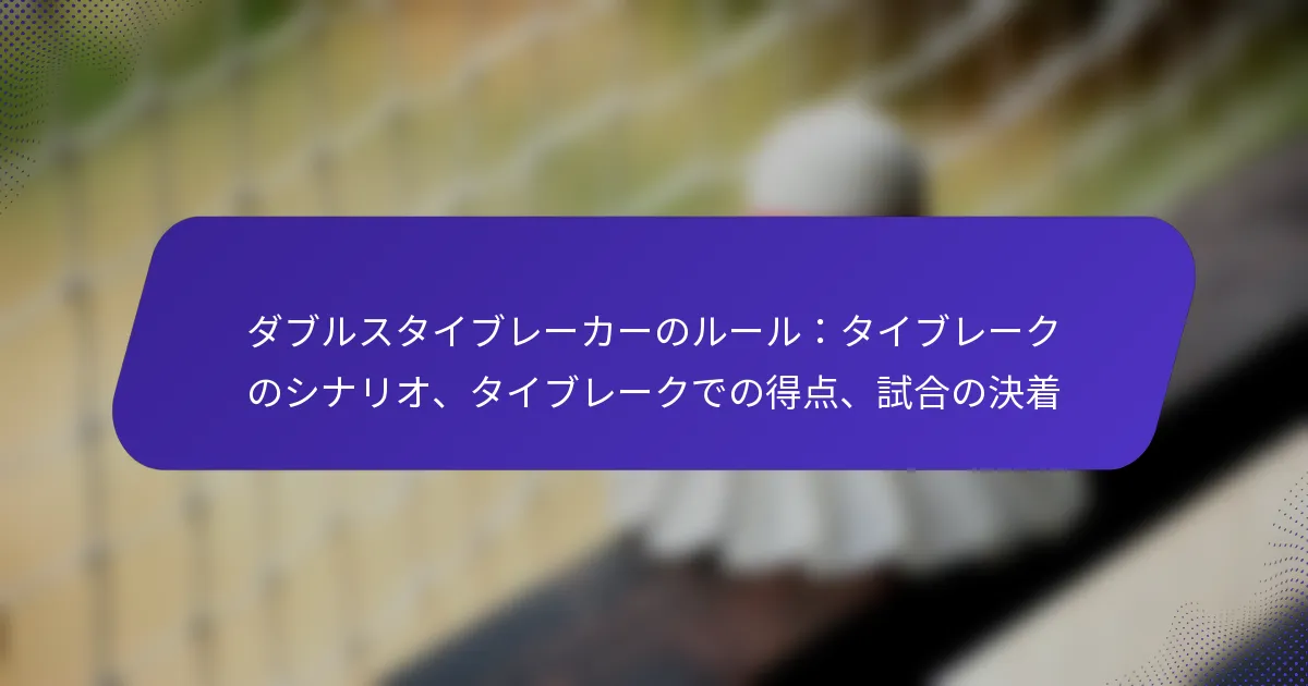 ダブルステニスにおけるタイブレークシナリオは、チームがセットスコア6-6に達したときに発生し、セットの勝者を決定するためにタイブレークが必要になります。これらのシナリオを理解することは、選手とファンの両方にとって重要であり、試合の結果や戦略に大きく影響を与える可能性があります。